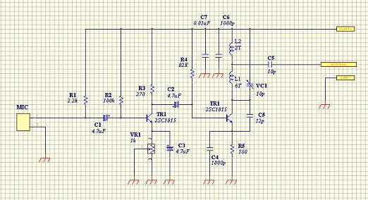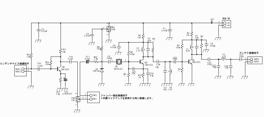 発振周波数を安定させるため、水晶を使ったFMワイヤレスマイクの製作。