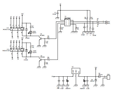電源はDC12Vとしました。マイコンは5Vで動きますので、レギュレータICで5Vを作り出します。